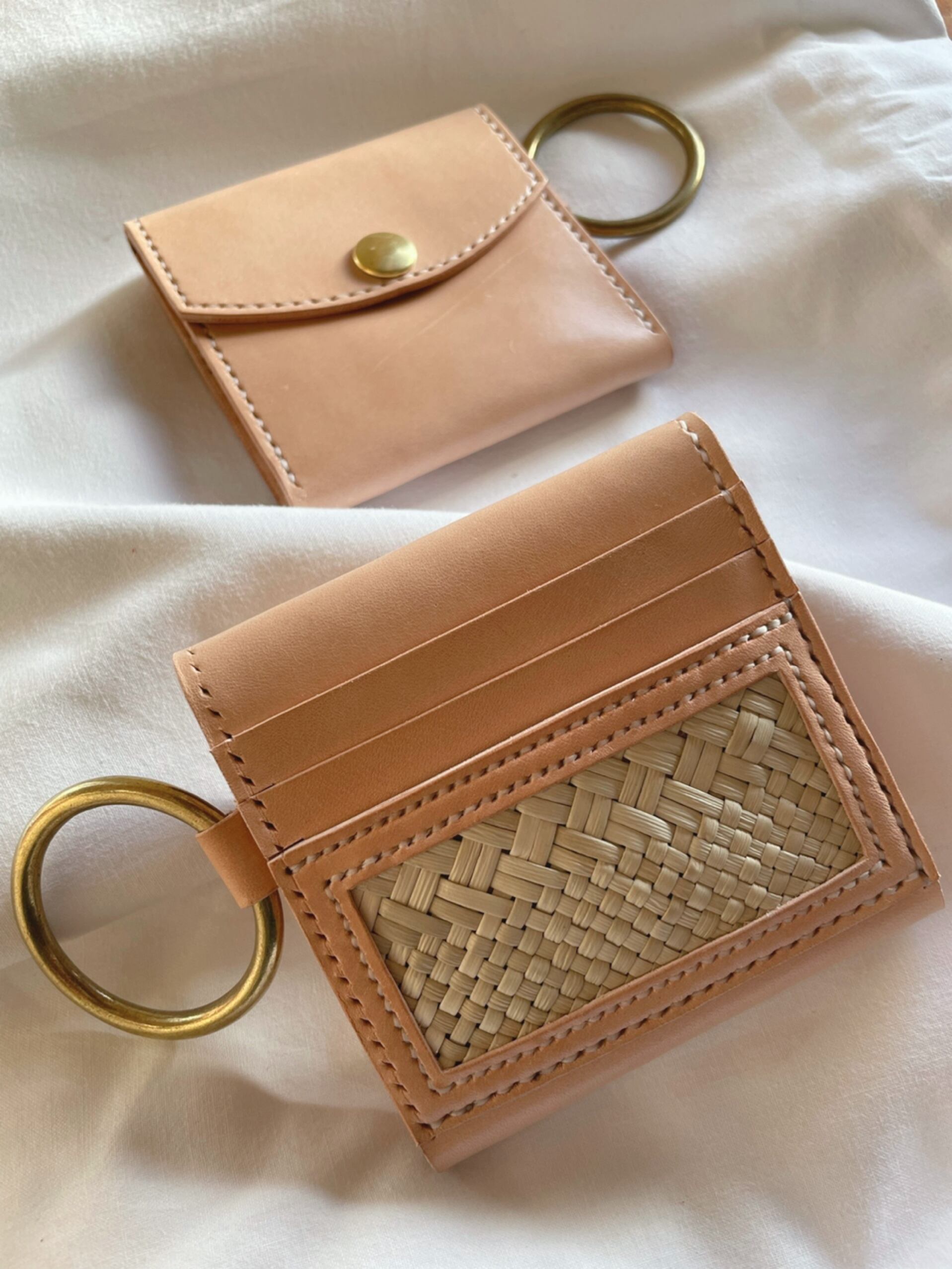 美しいアダン編みを革製品に取り入れた、他にはないデザインの小財布です。